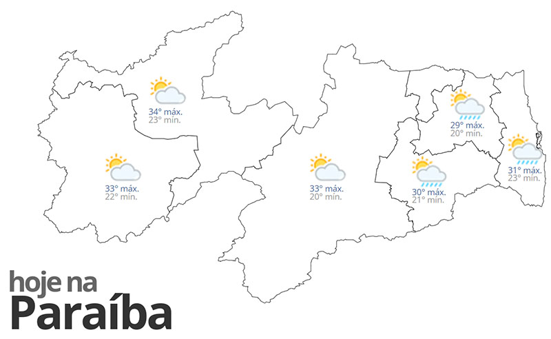 No decorrer do dia o tempo deverá permanecer com nebulosidade variável podendo ocorrer chuvas isoladas no setor centro/leste da Paraíba.