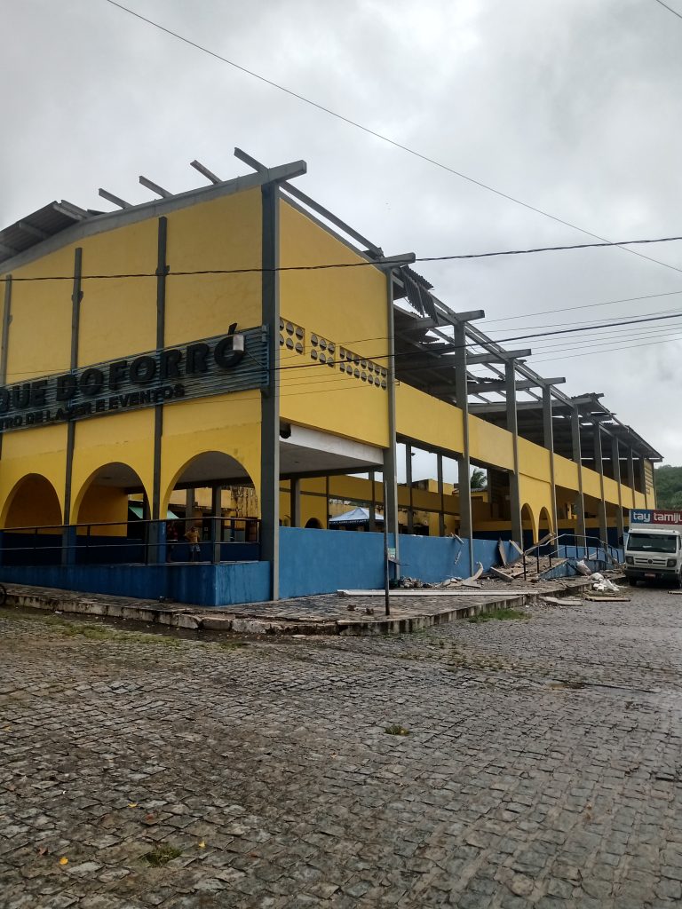 Chuva com ventania derruba parte de telhado do parque do forró em Duas Estradas