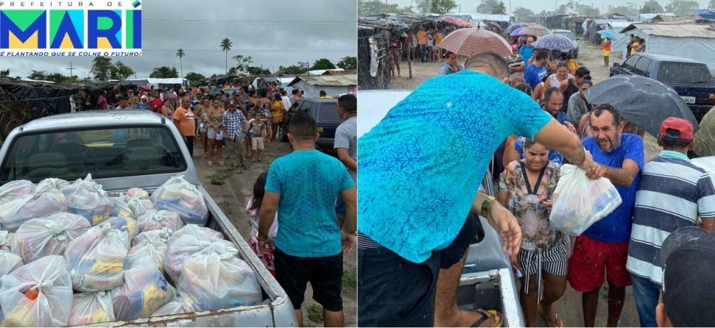 Prefeitura Municipal de Marí realiza entrega de cestas básicas as famílias do Acampamento “sem tetos” localizado as margens da PB-073
