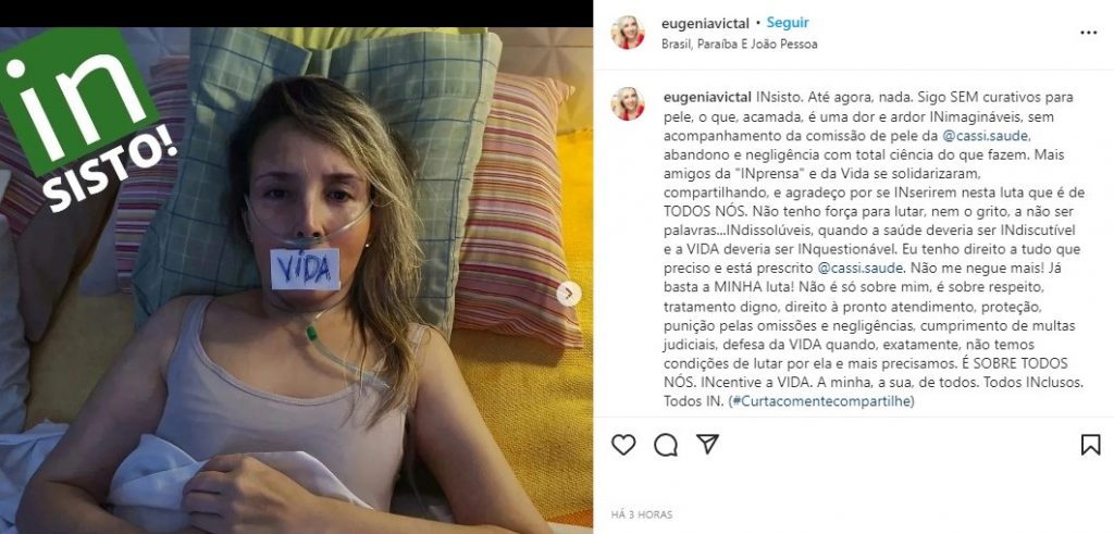 A ex-apresentadora da TV Correio e TV Cabo Branco, Eugênia Victal, cobra do plano de saúde Cassi, da Caixa de Assistência dos Funcionários do Banco do Brasil, que cumpra o que está estabelecido. Nas redes sociais, a jornalista que está acometida de uma doença neurológica rara, afirma que o plano tem “intensificado seu sofrimento” por […]