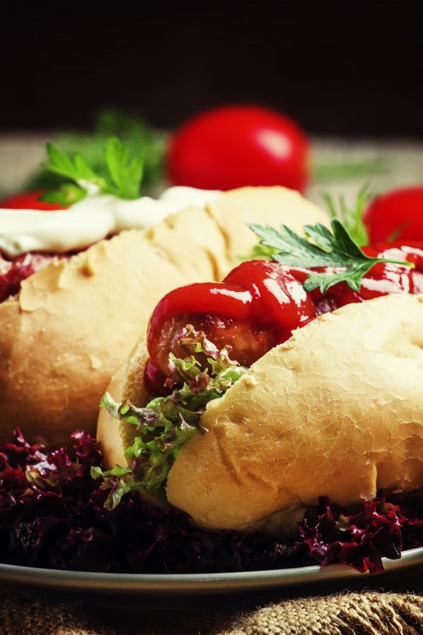 Pique os tomates sem sementes. Enquanto isso, coloque as linguiças finas, da Linha Linguiças Frescais Alegra, para grelhar. Depois, coloque a linguiça e o tomate nos pães, e sirva acompanhado dos molhos de maionese, catchup, mostarda, e não dá para deixar de fora o suco favorito dos pequenos.