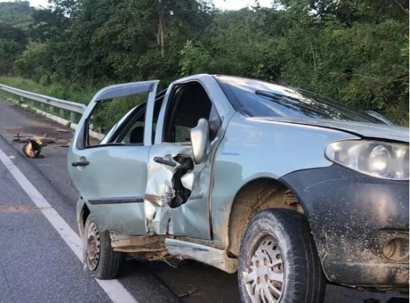 Homem morre após estrutura de metal atravessar carro e atingir vítima em acidente entre carreta e carro