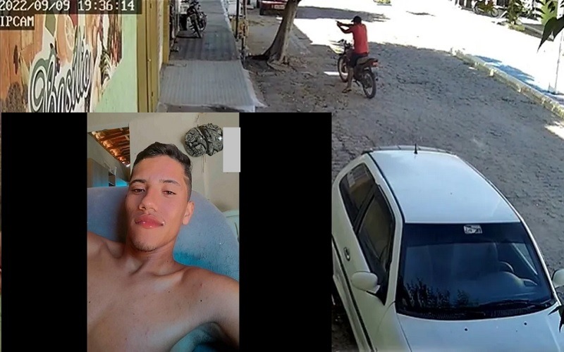 Um tio matou o sobrinho a tiros, na tarde desta sexta-feira (9), em Uiraúna, no Sertão paraibano. Imagens de câmera de segurança mostram o momento em que o suspeito chega em uma motocicleta e atira contra a vítima. Via Paraíba.com