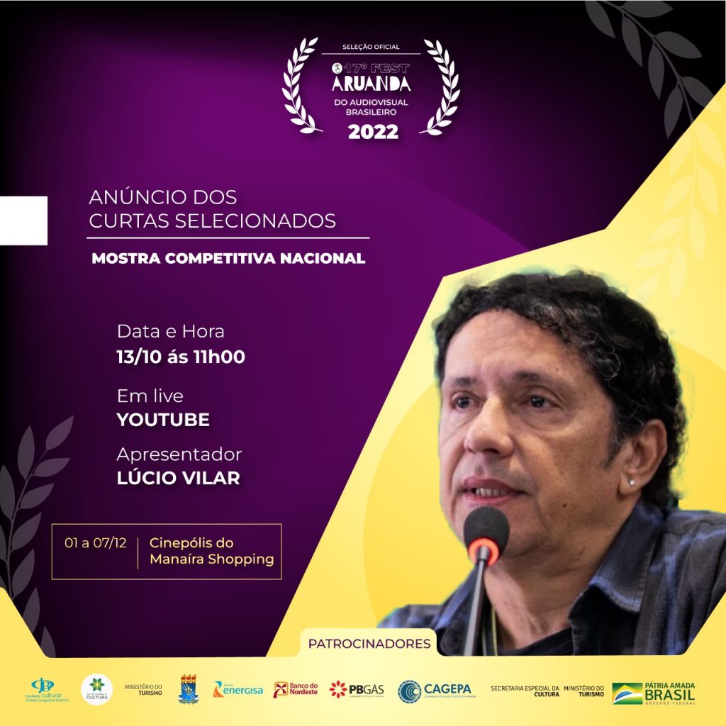 Na quinta-feira, dia 13/10, as 11hs, a organização do festival divulga em live com o produtor executivo Lúcio Vilar e comissão de seleção (Amilton Pinheiro, Camila Moraes e Marcos Mello) os 12 curtas metragens que farão parte da Mostra Competição Nacional. De 01 a 07 de dezembro, acontece o tradicional Fest Aruanda do Audiovisual Brasileiro, […]