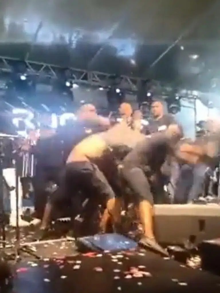 Integrantes da produção das bandas Psirico e Samba Trator trocam socos em cima do palco; veja vídeo