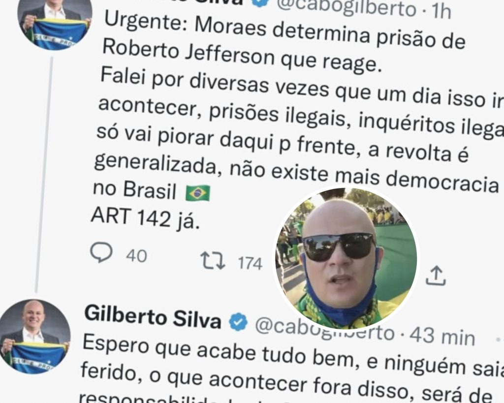 Cabo Gilberto diz que ação de Roberto Jefferson foi ‘reação’ a ‘prisão ilegal’ e pede intervenção militar, mas apaga tweet