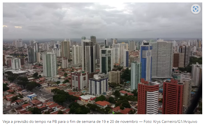 Veja a previsão do tempo na PB para o fim de semana de 19 e 20 de novembro