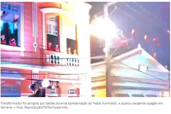 Balões soltos por atores que encenavam a peça ‘Natal Iluminado’, para celebrar a chegada da iluminação natalina, atingiram rede elétrica. Evento aconteceu normalmente após interrupção por cerca de uma hora. Um evento pensado para celebrar a chegada da iluminação natalina na cidade de Serraria, no Brejo paraibano, acabou com um apagão após dois fusíveis de um […]