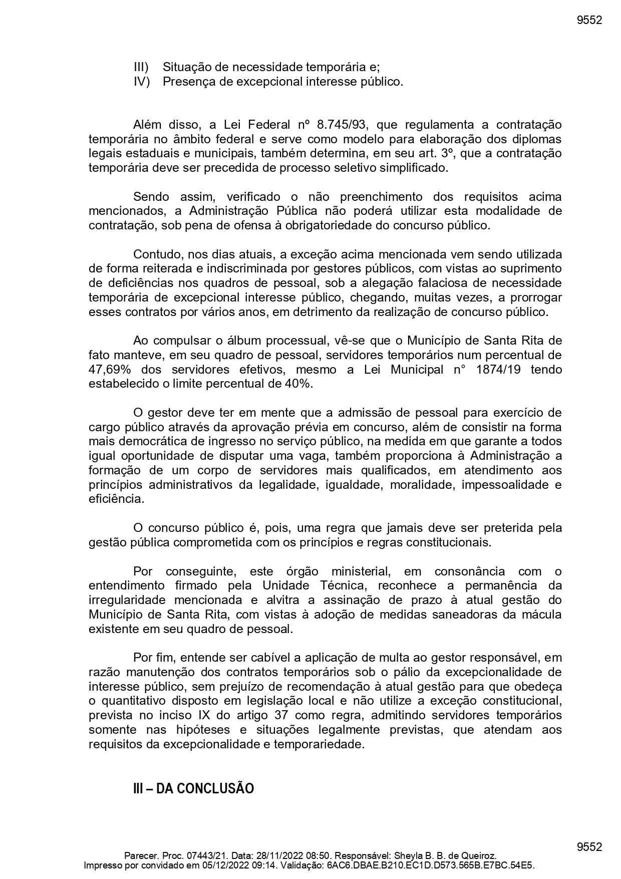 Uma outra irregularidade apontada, e mantida mesmo após a defesa por parte da gestão, foi a manutenção de contratados por excepcional interesse público por prazo superior a dois anos e em número superior ao máximo permitido pela legislação. Conforme apurou a reportagem, em Santa Rita é permitido, por lei, que o percentual de servidores públicos contratados por excepcional interesse público cheguem a 40%, no entanto, a auditoria do Ministério Público de Contas observou que na folha de pagamento de dezembro de 2020 existiam 1.283 servidores nesta modalidade, o que corresponderia a 47,69% dos servidores efetivos da cidade.