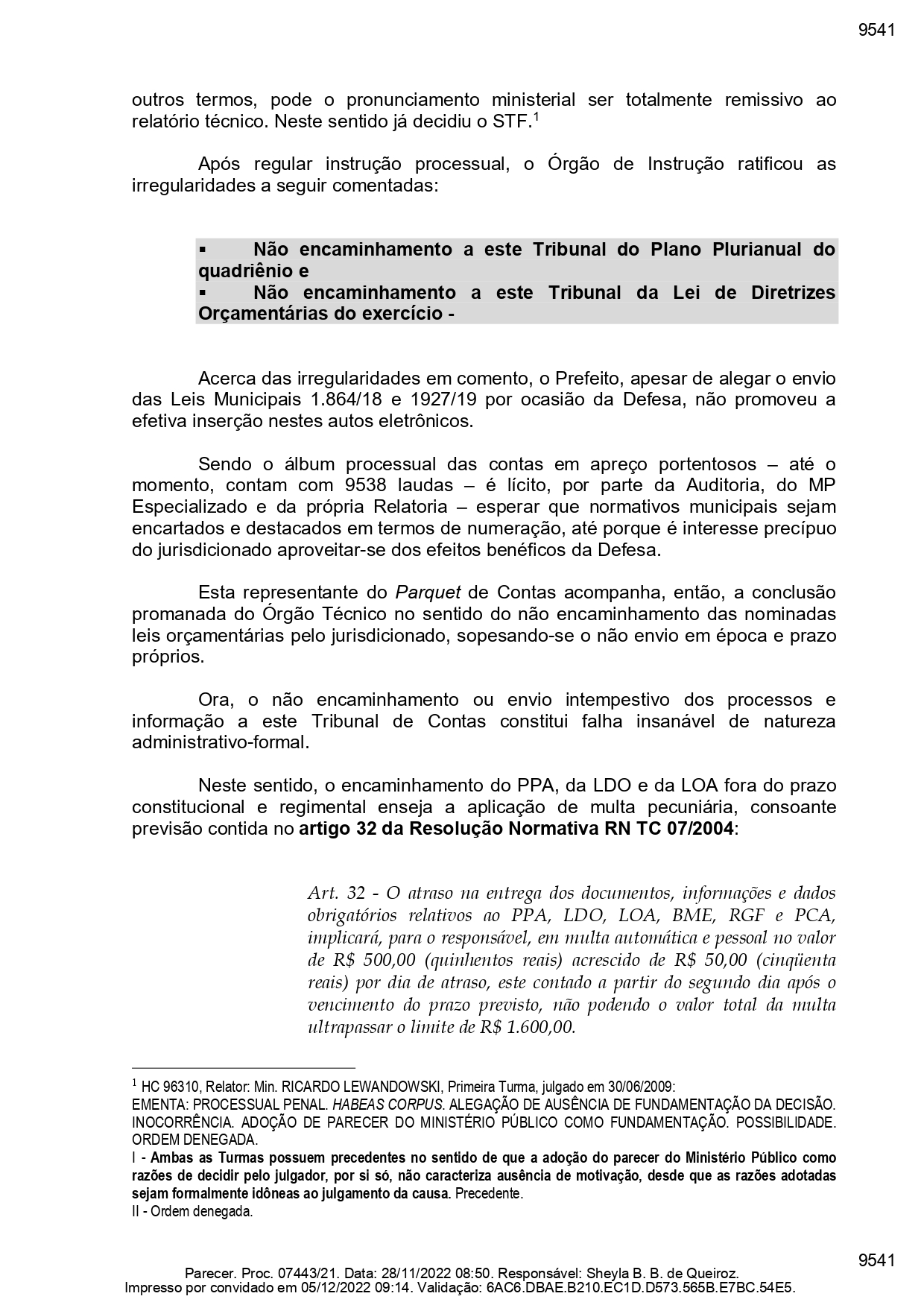 A falta de envio ao TCE do Plano Plurianual (PPA) do quadriênio é outra irregularidade apontada pelo Ministério Público, assim como o não envio da Lei de Diretrizes Orçamentárias relativa ao ano de 2020. De acordo com o conteúdo, o gestor teria feito a abertura de créditos adicionais sem autorização da Câmara, o que foi negado pela gestão.
