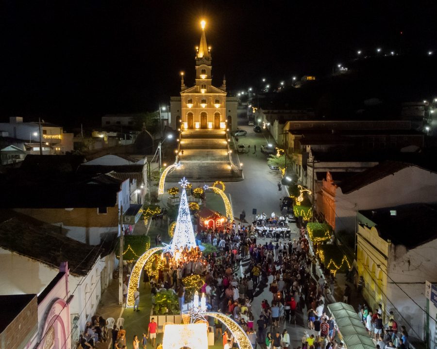 A praça de frente a imponente Igreja Matriz está coberta de luzes e enfeites que encantam ainda mais a visão e enche a imaginação das pessoas com o espírito natalino.