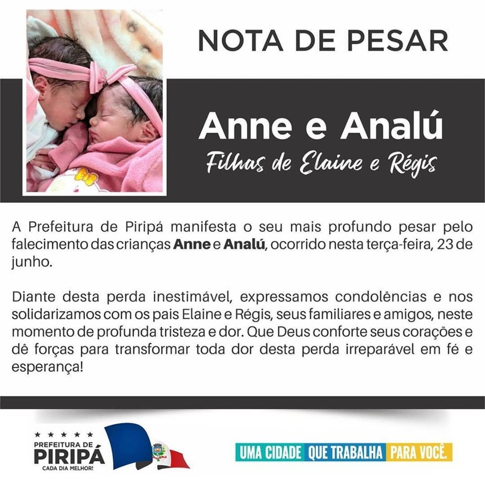 No final da tarde do mesmo dia, Anne e Analú foram enterradas no cemitério da Saudade Dois, em Piripá. A prefeitura emitiu uma nota manifestando suas condolências à família. A delegacia da cidade informou ao G1 que não irá abrir investigação sobre o caso.