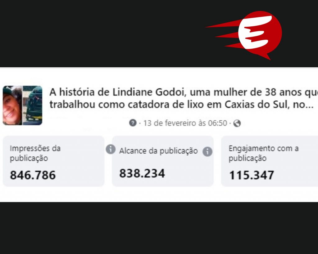 A história de superação da ex-catadora de lixo do Caxias do Sul, Lindiane Godoi, republicada pelo ExpressoPB.net no dia 13 de fevereiro ‘explodiu’ de acessos e em cinco dias a publicação chegou até a noite desta sexta-feira (17) a 838.234 acessos em nossas plataformas digitais. O número de engajamento, onde as pessoas compartilharam, curtiram ou […]