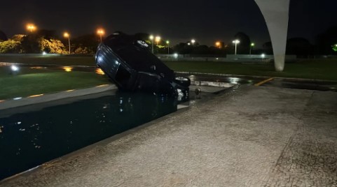 Motorista cai com carro no espelho d’água do Palácio do Planalto, em Brasília