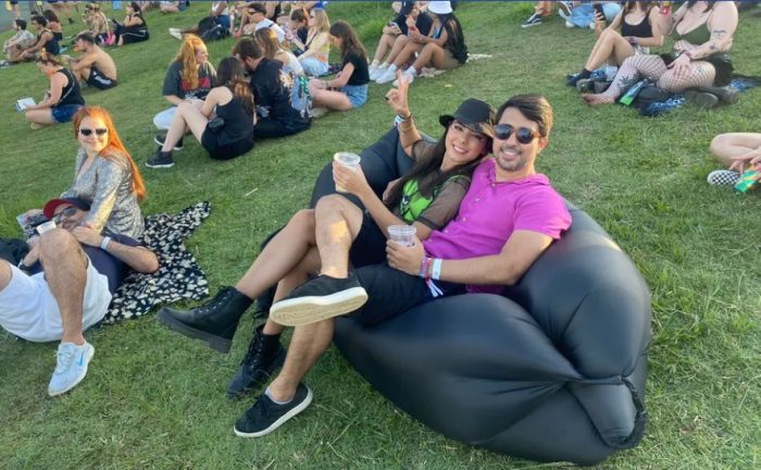 Casal leva sofá inflável para o Lollapalooza: ‘Já passamos dos 30’