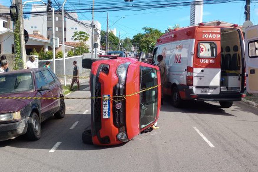 Motorista perde controle ao usar celular e capota carro em avenida do Pedro Gondim, em João Pessoa