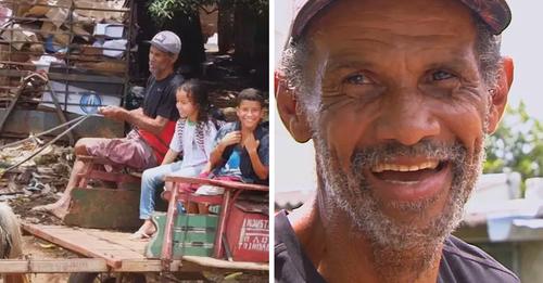 Pai viraliza ao percorrer 3km de carroça todos os dias para levar os filhos na escola