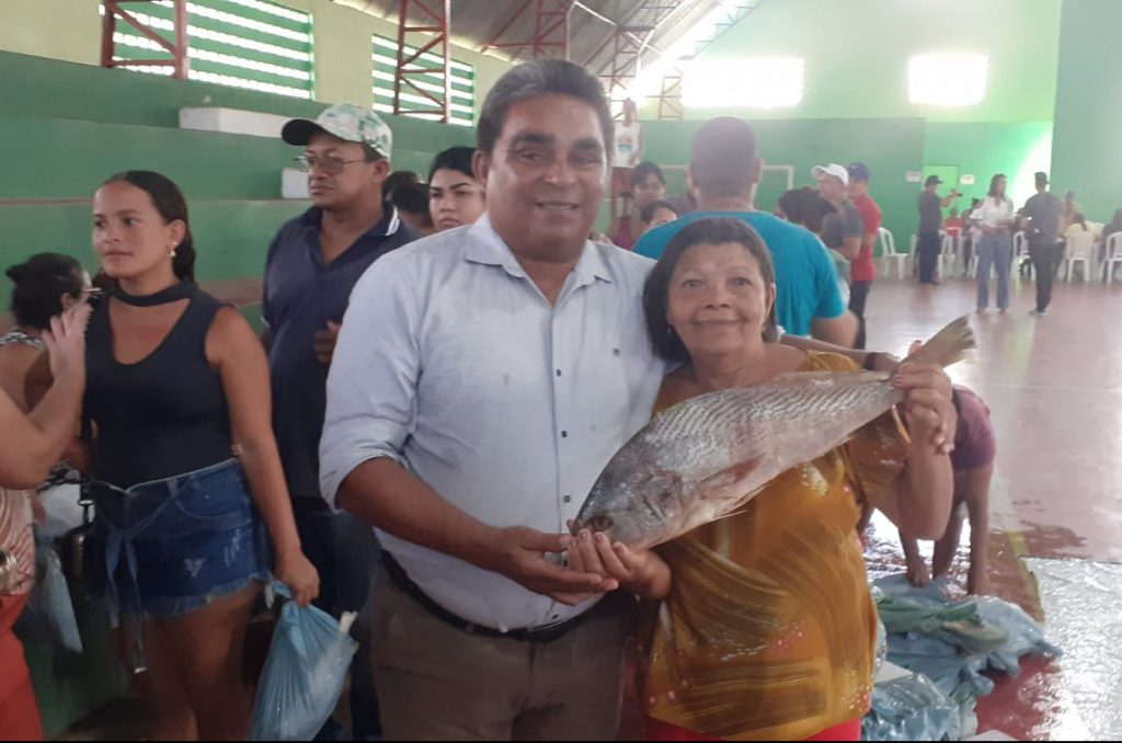 O prefeitura de Mari, na Paraíba, fez a entrega na manhã desta quinta-feira (06), do tradicional peixe da semana santa às famílias carentes. A entrega do pescado foi realizada no ginásio poliesportivo de Mari e acompanhada pelo prefeito Antonio Gomes (PL). Redação/ExpressoPB Foto: Rildo Publicidades
