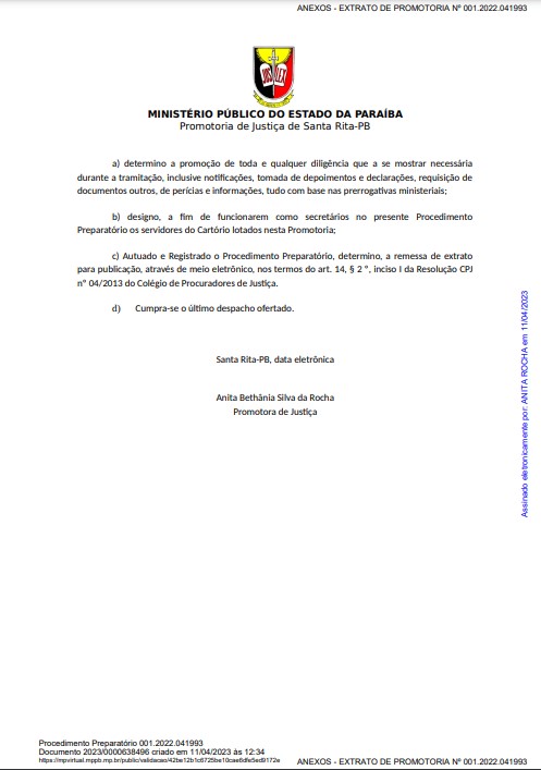 De acordo com documento obtido pelo ClickPB, o Ministério Público vai “apurar os fatos, individualizar as irregularidades e condutas detectadas, além de colher elementos de provas para embasar eventual ação civil pública.”