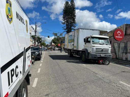 Homem que estava em moto morre atropelado por caminhão de coleta seletiva, em Campina Grande