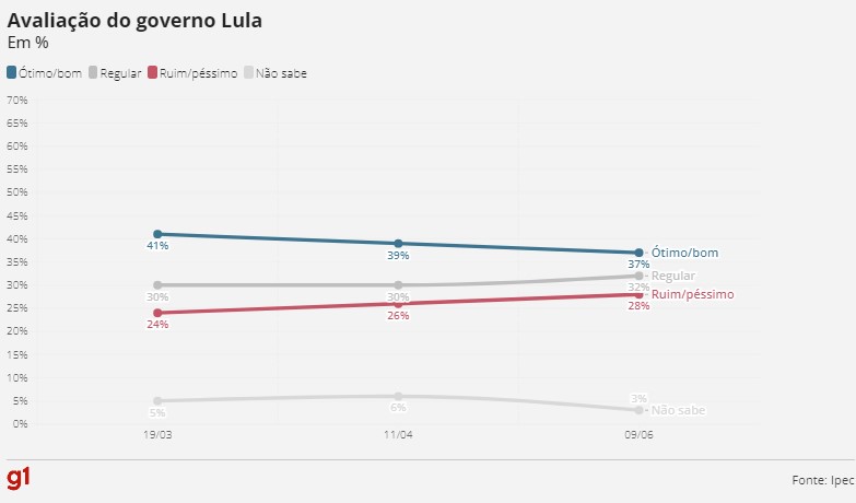 Ipec: governo Lula é aprovado por 37% e reprovado por 28%
