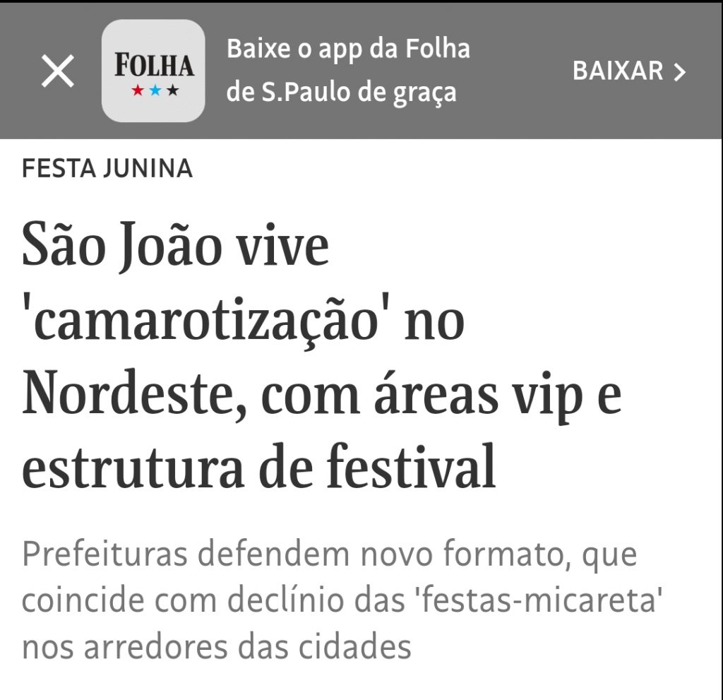 Folha de SP escancara “camarotização” do São João para ricos em CG e em festas juninas no NE pagas com dinheiro público