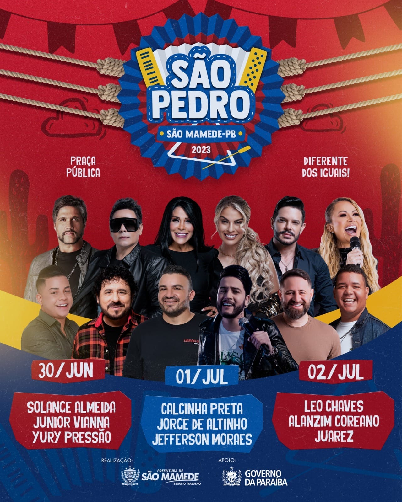 Vão se apresentar no São Pedro de São Mamede a banda Calcinha Preta, o cantor Léo Chaves, Solange Almeida, Jorge de Altinho, Júnior Vianna, Jefferson Moraes, Alanzim Coreano, Yury Pressão e o cantor Juarez (ex-Magníficos).