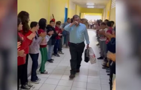 Professor se aposenta e alunos fazem corredor humano para homenageá-lo