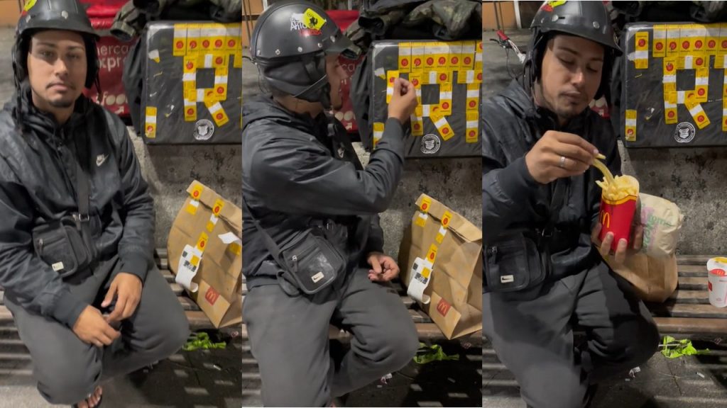 RJ: motoboy come lanches de clientes que se recusam a pegar entrega na portaria e viraliza nas redes