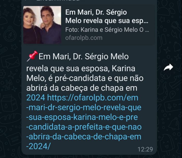 O clima no grupo de oposição do município de Mari esquentou nas últimas horas após repercutir n’OFarol PB matéria dando conta de que a ex vice-prefeita Karina Melo afirma que sua candidatura a prefeita em 24 é irreversível.