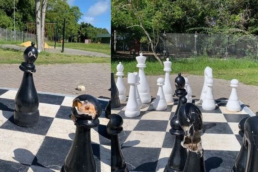 Vândalos invadem Estação Cabo Branco e destroem peças de escultura de xadrez gigante, em João Pessoa