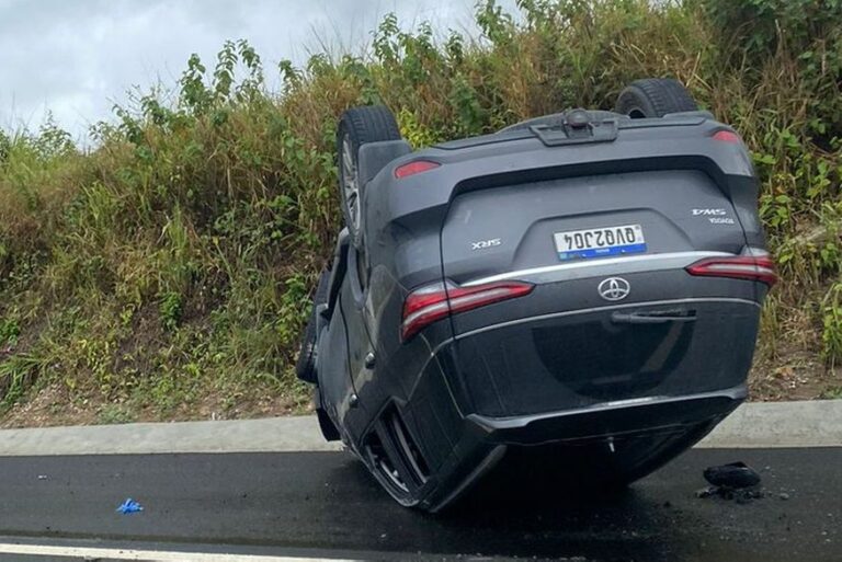Carro capota na BR-230 próximo a posto da PRF de Café do Vento, em Sobrado, na Paraíba