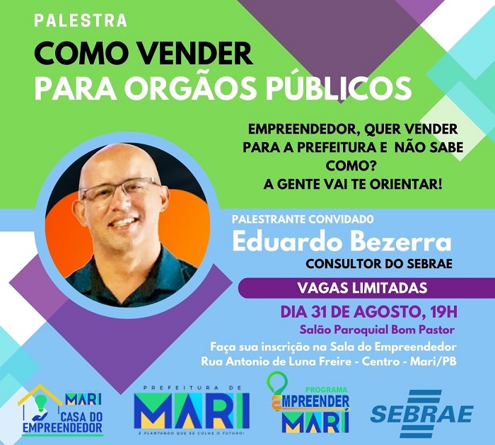 O SEBRAE em parceria com a Sala do Empreendedor e o Programa de Empreendedorismo Municipal Empreender Mari estará promovendo a palestra “Como vender para órgãos públicos”. A palestra é direcionada a empreendedores locais sendo uma grande oportunidade para quem quer ter oportunidade de venda para um potencial mercado consumidor. A palestra ocorre nesta quinta-feira (31) […]