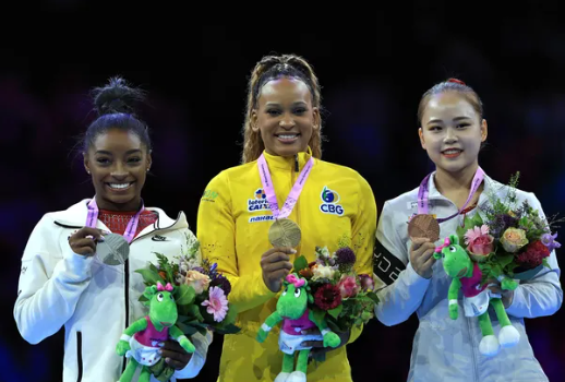 Rebeca Andrade é bicampeã mundial do salto em cima de Simone Biles