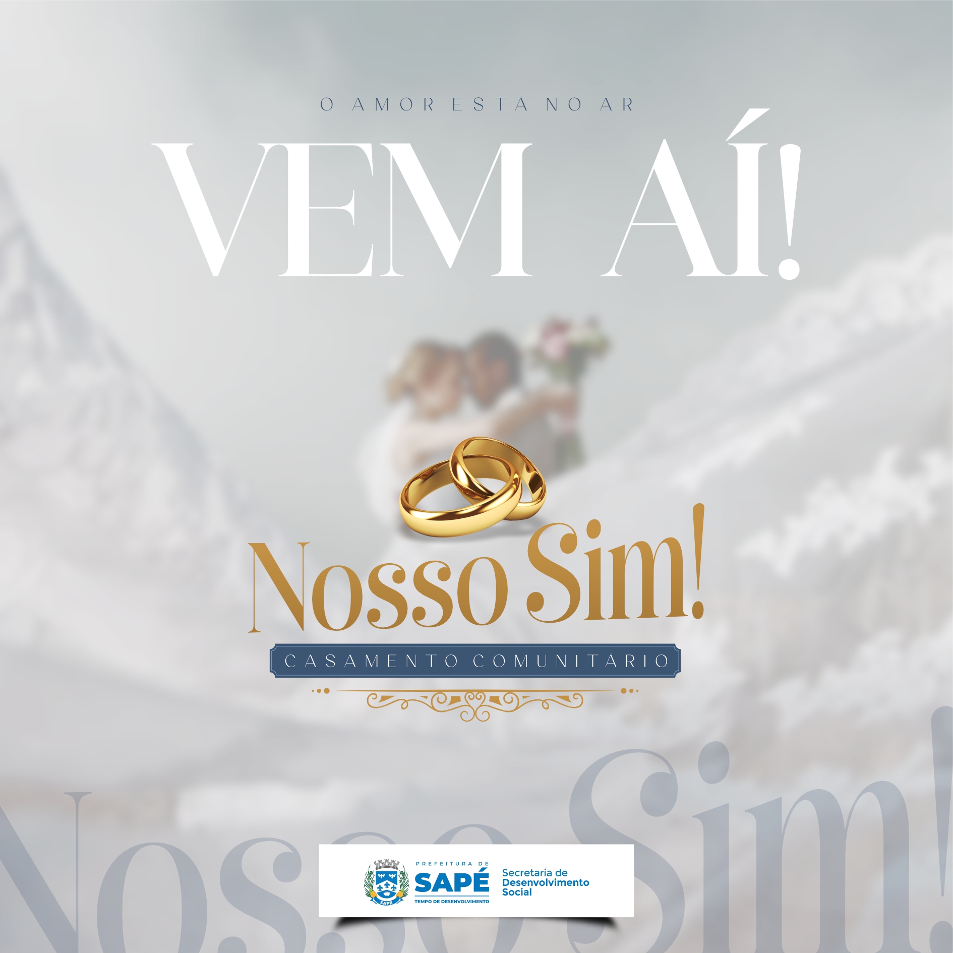 A Prefeitura de Sapé vai realizar em breve o ‘Nosso Sim’: a primeira edição de casamento comunitário para a população do município, que acontecerá em 22 de novembro. O anúncio foi feito pela Secretaria de Desenvolvimento Social e as inscrições começam na próxima segunda-feira (23).