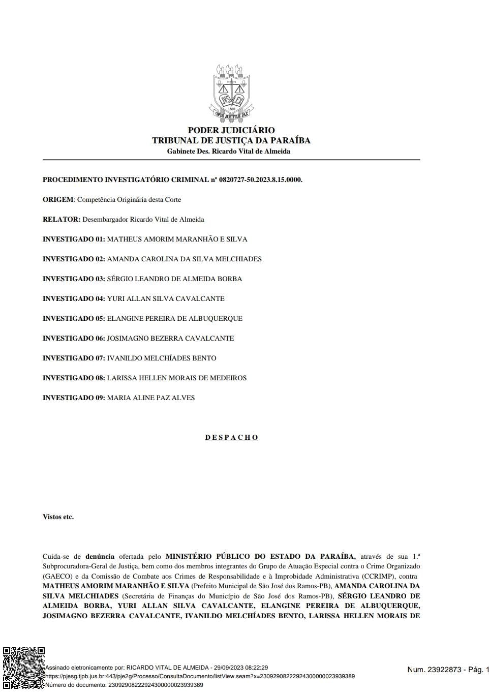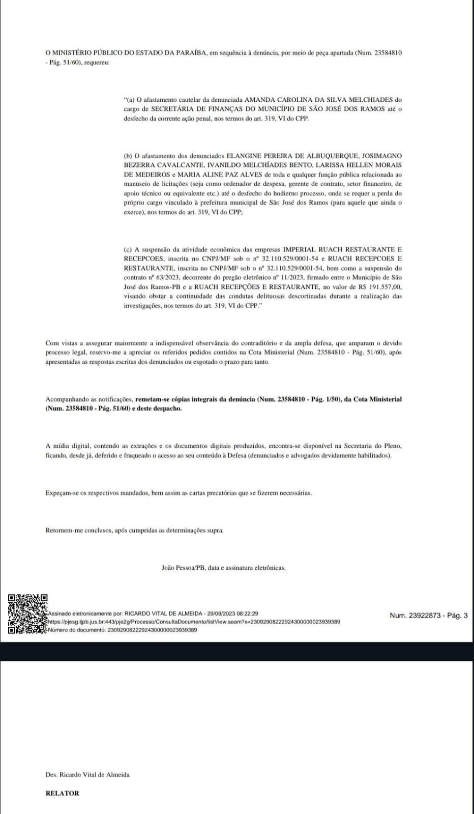 O prefeito de São José dos Ramos, Matheus Amorim, exonerou no último mês de setembro a primeira-dama Amanda Melchiades do cargo de secretária municipal de finanças, após uma denúncia do Ministério Público da Paraíba e determinação judicial. Como trouxe o ClickPB em junho deste ano, o MPPB investiga possíveis fraudes na administração do município, por meio da operação ‘Dionísio’.
