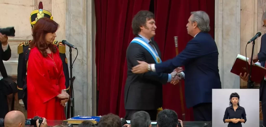 Milei recebe faixa de Fernández e toma posse como presidente da Argentina