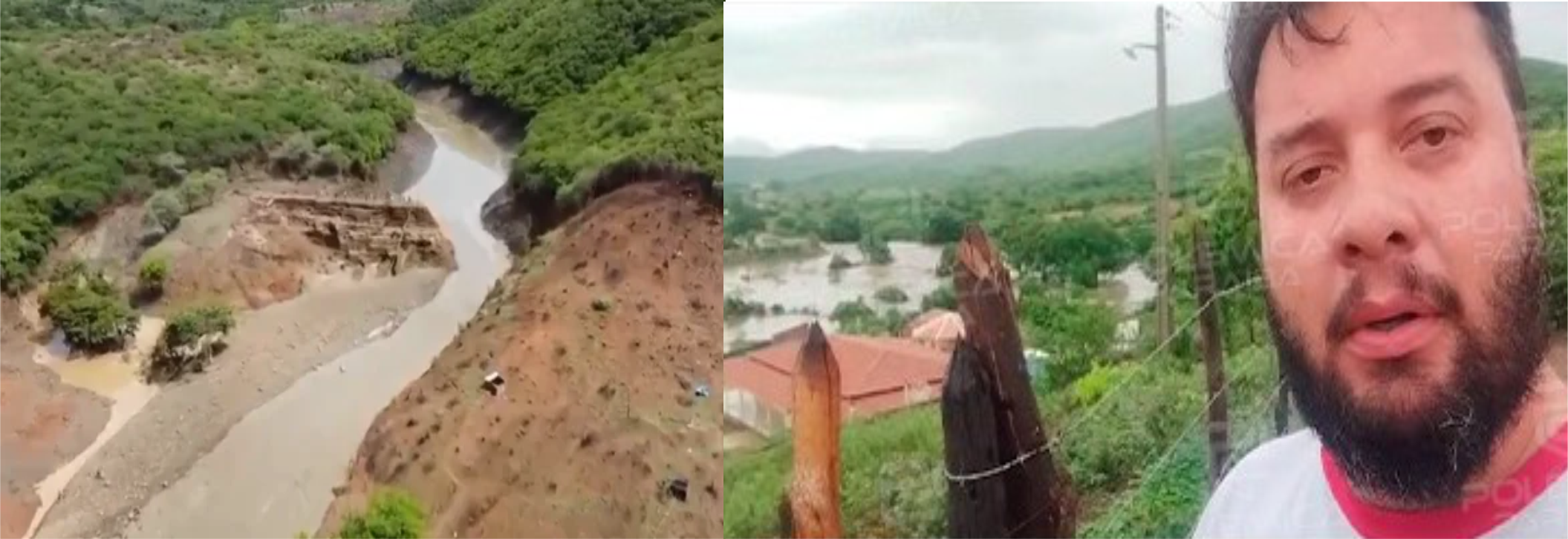 Maria Alves afirmou ainda que a única passagem para o sítio é o trecho que alagou. “Só tem essa passagem, pelo rio. Quando a barragem rompeu, aumentou o nível de água do rio. Tem pessoas de idade, mas graças a Deus, não tem vítima fatal e nem feridos. A água levou só bens materiais”, acrescentou.