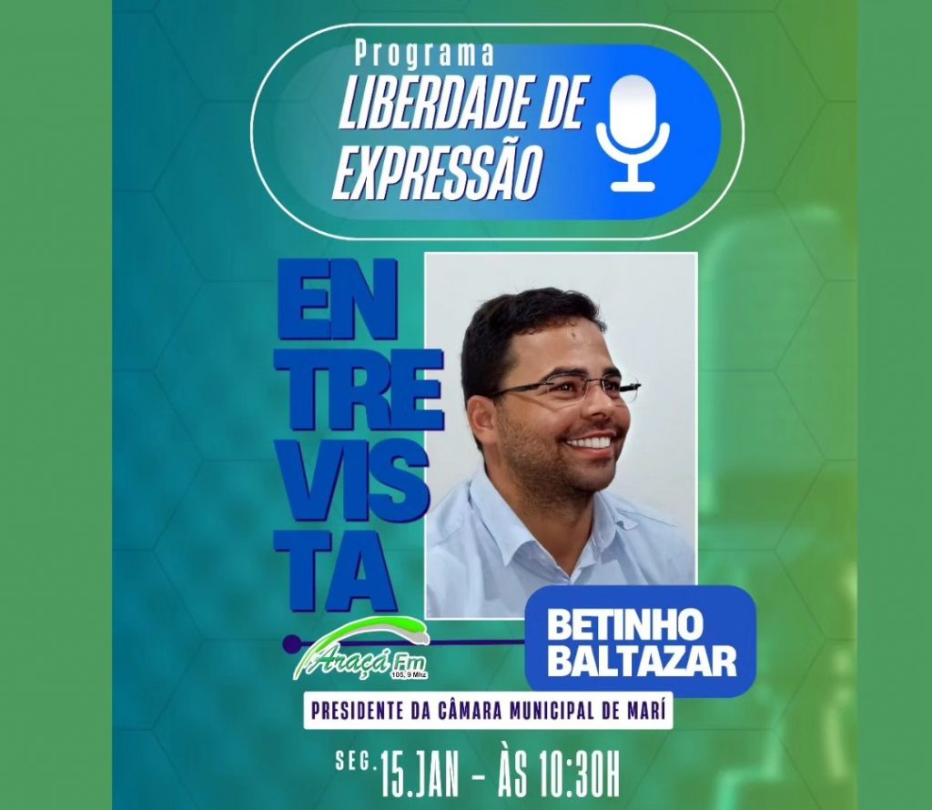 Nesta segunda-feira (15): Presidente da Câmara de Marí será entrevistado do Liberdade de Expressão na Araçá FM