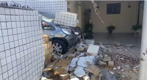Carro desgovernado destrói muro de casa em João Pessoa e motorista é detido