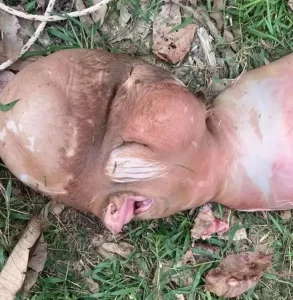 Um bezerro nasceu com uma deformação na parte da cabeça em uma vila na Tailândia. Os moradores estão chamando de “cabeça humana”.