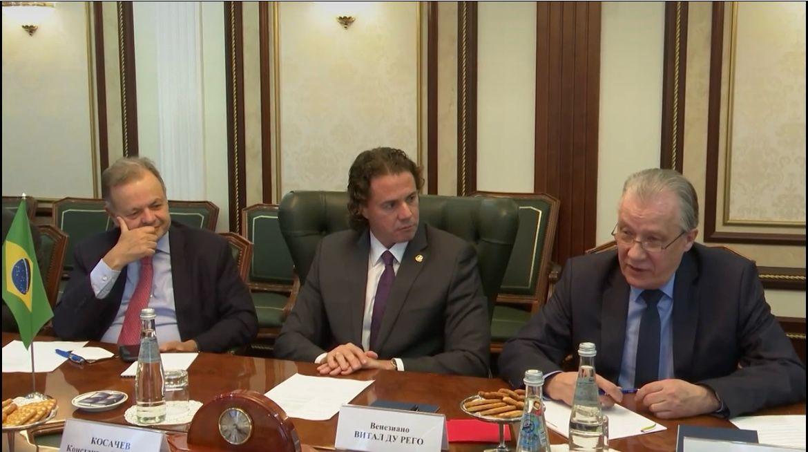 O Vice-Presidente do Senado Federal, Senador Veneziano Vital do Rêgo (MDB-PB) está em Moscou, na Rússia, representando o Senado brasileiro em missão oficial. Nesta terça-feira (06), ele participou de uma reunião com os membros do Conselho da Federação Russa, o equivalente aos membros do Congresso Brasileiro, para tratar de parcerias comerciais entre Brasil, Rússia e demais membros do Brics, que é formado por África do Sul, Brasil, Rússia, Índia, China, Egito, Etiópia, Arábia Saudita, Emirados Árabes Unidos e Irã.