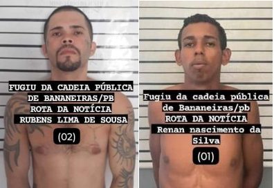 Foi divulgada na quinta-feira (15), que dois presidiários da cadeia de Bananeiras, agreste Paraibano, efetuaram fuga na última segunda-feira (12). Conforme as informações colhidas pelo ExpressoPB.net , os fugitivos foram Renan Nascimento da Silva e Rubens Lima de Sousa. Qualquer informação pode ligar pra os números de telefone 190 ou 197. Redação/ExpressoPB