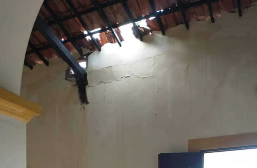 FOTOS: raio atinge igreja na Paraíba e danifica paredes e telhado