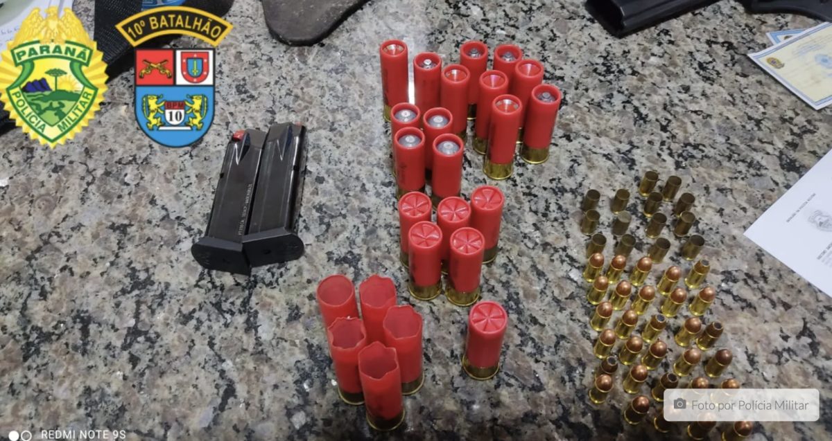 Após o relato das testemunhas, os policiais entraram na casa do vizinho. Lá, encontraram uma espingarda de pressão modificada para calibre .22 com luneta e uma escopeta, além de 49 munições de diferentes calibres intactas e outras 19 deflagradas.