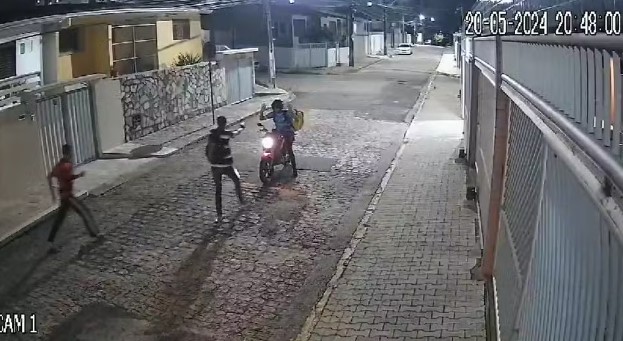 Homens armados assaltam motoboy de João Pessoa e câmeras de segurança flagram ação