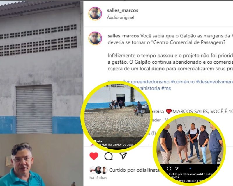 O prefeito de Marí pode ser comparado com ‘carro velho, que só anda no tranco. Dois dias após o suplente de vereador Marcos Sales publicar um vídeo em seu instagram criticando o abandono do Galpão de Costura as margens da beira da pista e falando do que havia projetado para o local enquanto esteve a frente do Empreender Marí, Antonio Gomes correu para dizer que vai implantar uma fábrica da Ricol no local. (Assista ao vídeo abaixo).