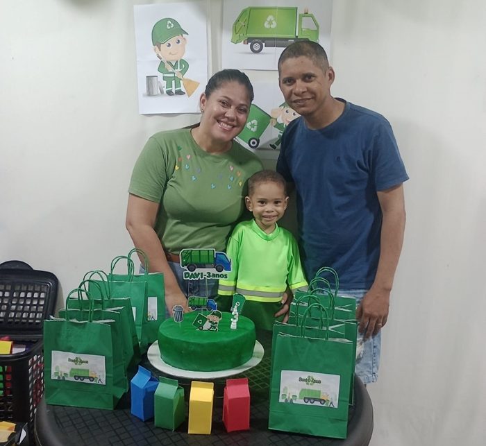 Criança de 3 anos tem sonho realizado com tema de gari em festa de aniversário, em Guarabira