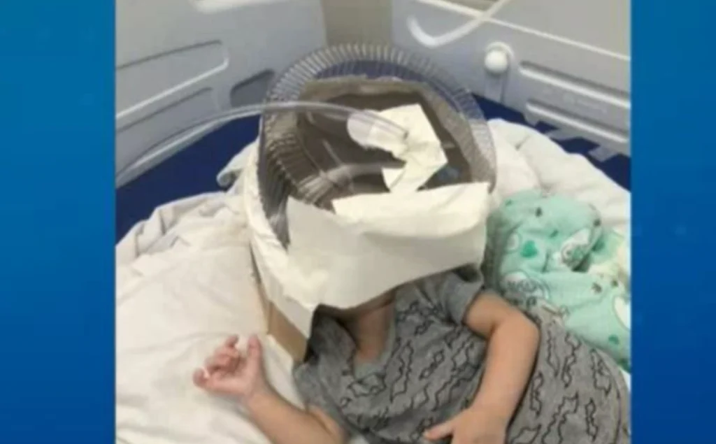 Embalagem de bolo é usada como máscara de oxigênio em bebê