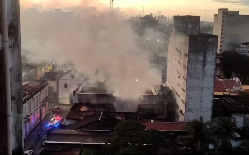 Prédio no Centro Histórico de João Pessoa é consumido pelas chamas e corre o risco de desabar